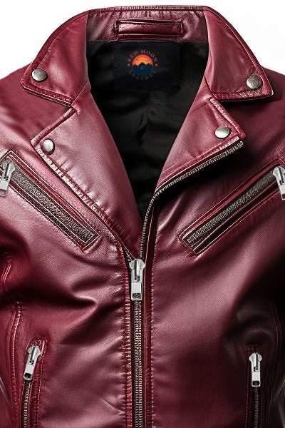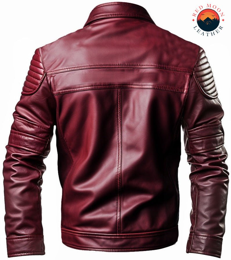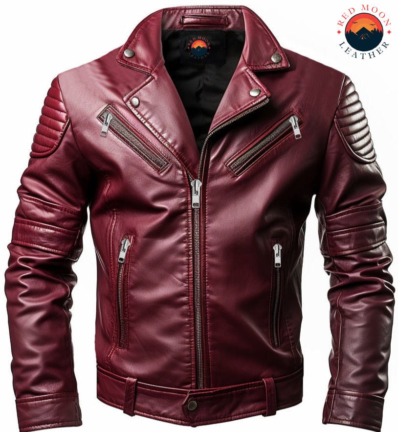 Stand out in style with the Men’s Maroon Designer Leather Jacket from Red Moon Leather – a perfect fusion of luxury, durability, and modern flair. Made from 100% genuine maroon leather, this jacket features a rich, deep color and a soft, supple texture that develops character over time. Designed for both fashion and function, it includes a classic collar, four spacious pockets, buttoned cuffs, and a smooth zipper closure. The inner lining of viscose, satin, and polyester offers exceptional comfort and structure.